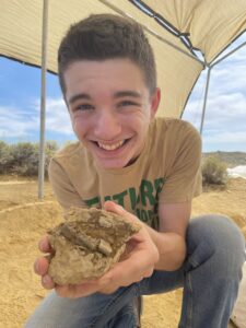 That calm demeanor belies the significance of Connor’s find. On the very first day of his week-long expedition with the Elevation Science Institute in late July, Connor discovered a finger bone approximately the size of his pinkie – a fossil that may have belonged to a small dinosaur or juvenile from the Jurassic period.