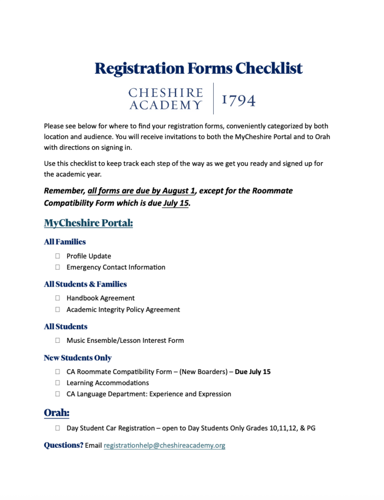 Questions? Contact registrationhelp@cheshireacademy.org.